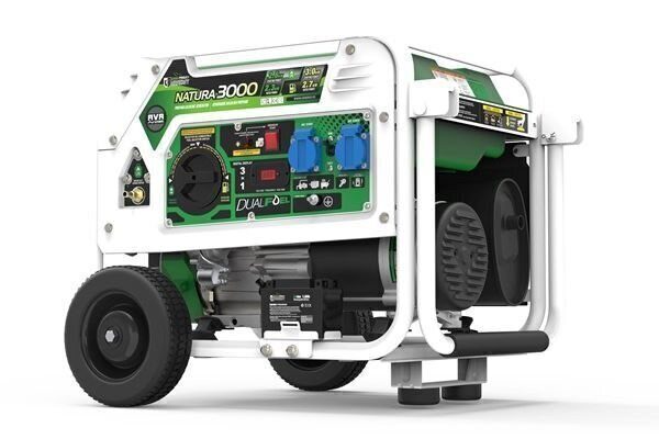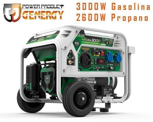 El generador de combustible dual gasolina-propano Natura 3000 Genergy, esta equipado con un novedoso selector de combustible que permite el intercambio entre gasolina y propano sin necesidad de apagar el motor. El uso del generador en modo propano ofrece un importante ahorro economico, siendo ademas los gases de su combustion menos dañinos para el medio ambiente, ya que el propano es un combustible seguro, limpio y facil de encontrar y almacenar.
