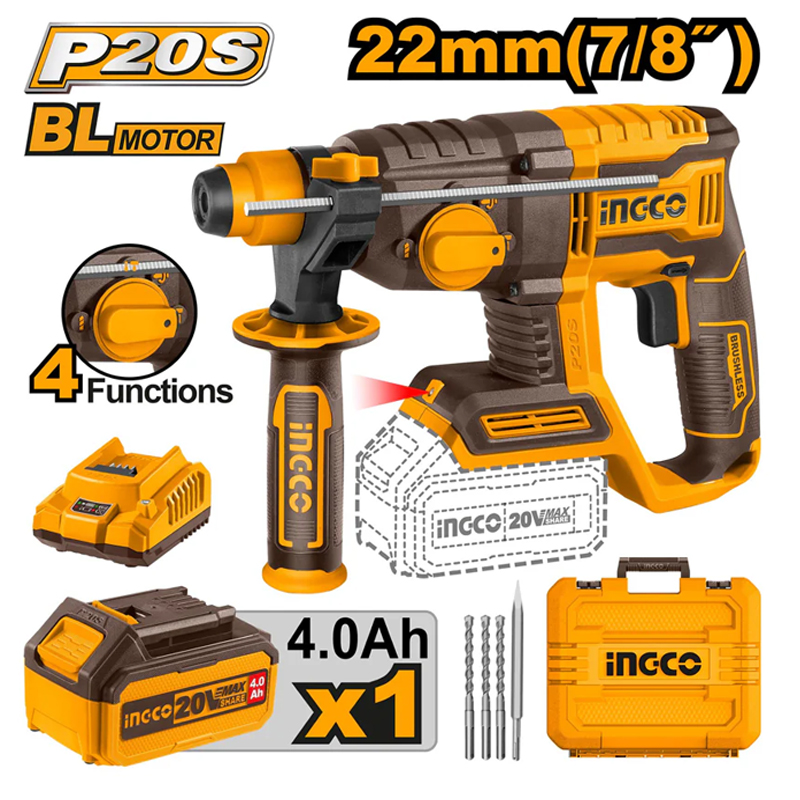 OTOMARTILLO 20V P20S 20MM 4 FUNCIONES BRUSHLESS C BAT + CARG + VALIJA Y PUNTAS (CRHLI202081)