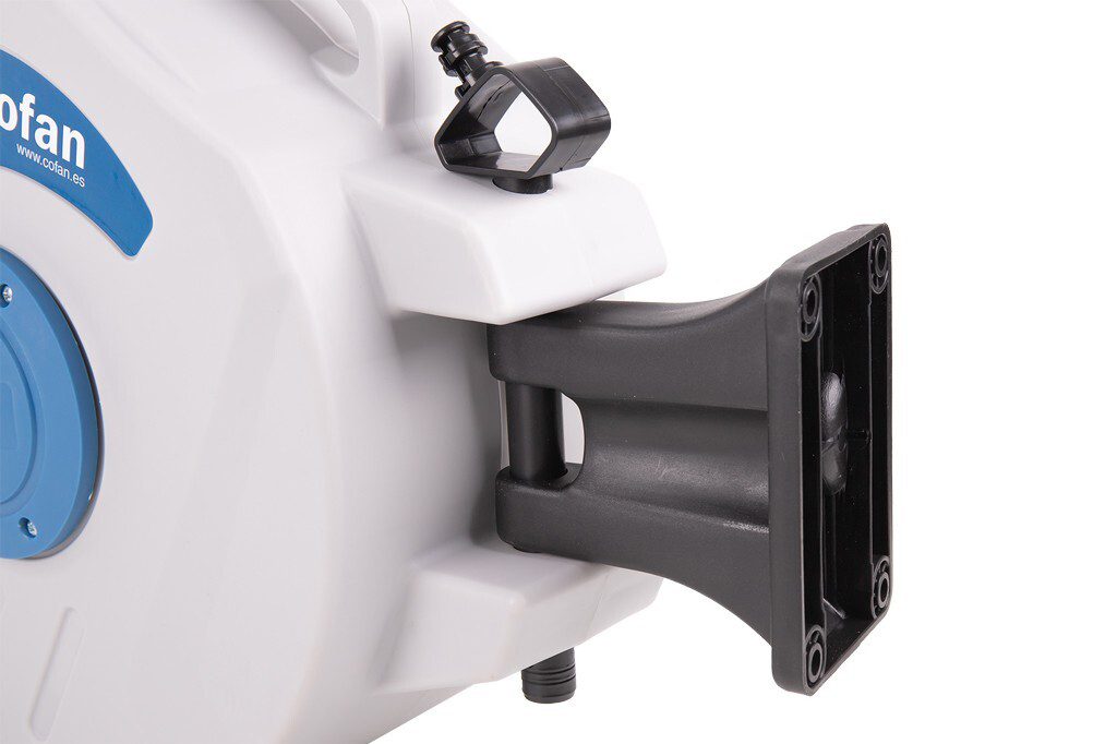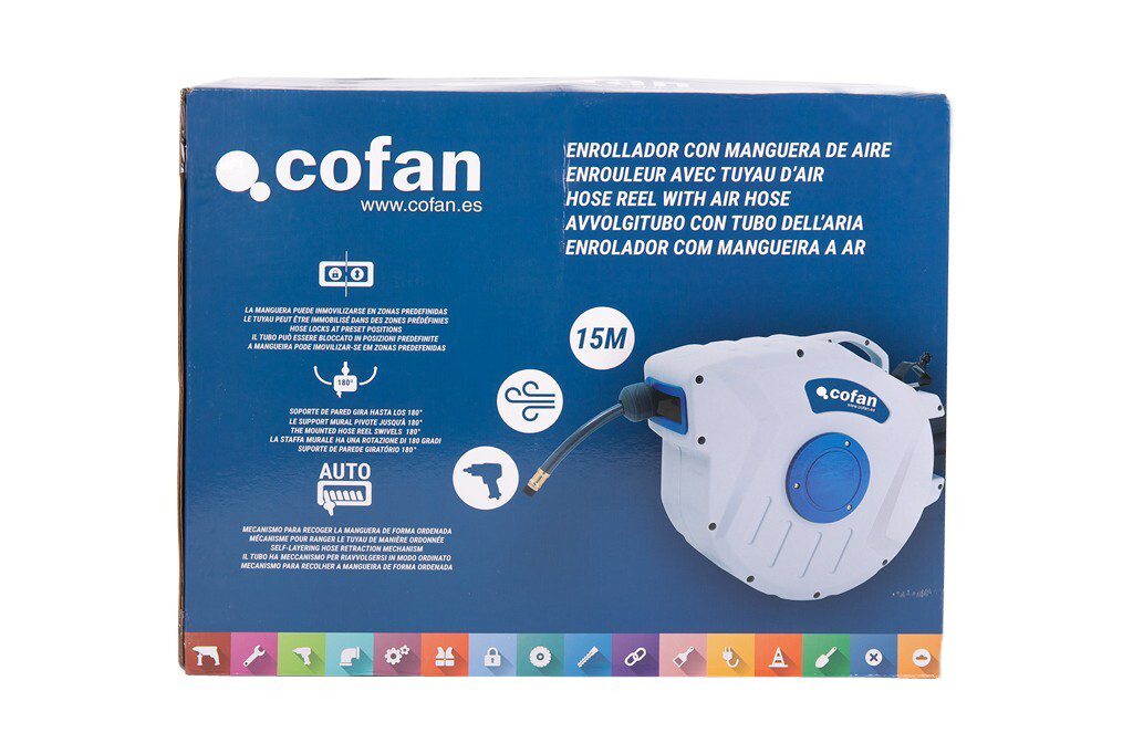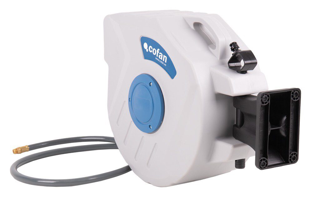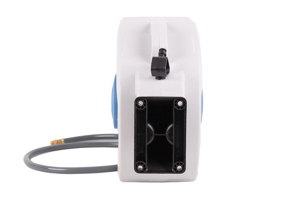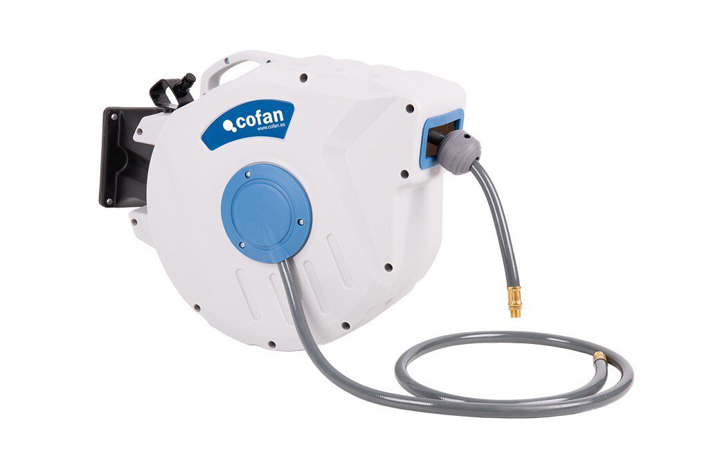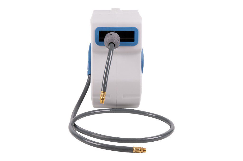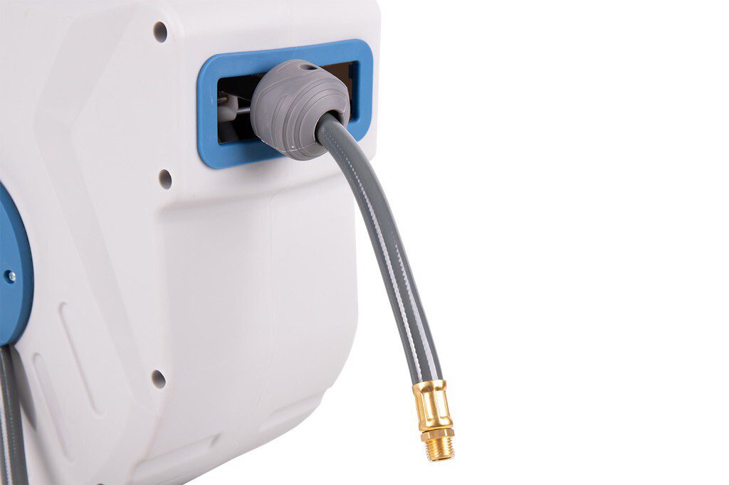 Enrollador automático con manguera de aire. Diseñado con un recogedor automático y soporte de polipropileno para anclaje en la pared, este enrollador ofrece comodidad y eficiencia en el manejo de mangueras de aire. Fabricado en PVC de alta calidad, garantiza resistencia y durabilidad en entornos industriales. Con una capacidad máxima de 24 bar, la manguera de aire incluida tiene una longitud de 15 metros y un diámetro de 9,5 x 15 mm, ofreciendo versatilidad en aplicaciones neumáticas. Las medidas compactas de 40 cm x 35,5 cm x 16 cm hacen que este enrollador sea fácil de instalar en cualquier lugar de trabajo.