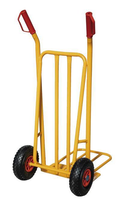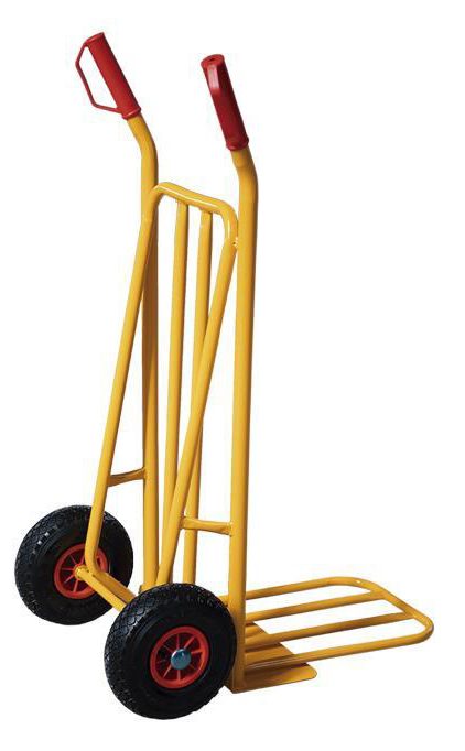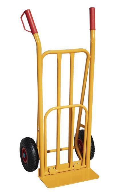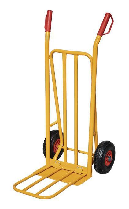 Carretilla de carga con una capacidad de carga de hasta 300 kg, que la hace adecuada para transportar prácticamente cualquier tipo de mercancía como sacos, cajas, muebles, electrodomésticos, etc. Fabricada con un robusto chasis de acero con tubos de 32 mm de diámetro. Esta carretilla dispone de una pala ancha y plegable, de 400 x 200 mm, que puede utilizarse de forma plegada para poder mover bultos más pequeños de una forma más cómoda y manejable, ganando, de esta manera, movilidad. Además, tiene unos mangos de polipropileno con protección para las manos, ruedas neumáticas de ø260 mm y unas aletas en la parte inferior de la carretilla diseñadas para ensanchar la superficie de contacto de la superficie vertical. La carretilla de almacén mide 1160 x 510 x 780 mm y pesa 12 kg.