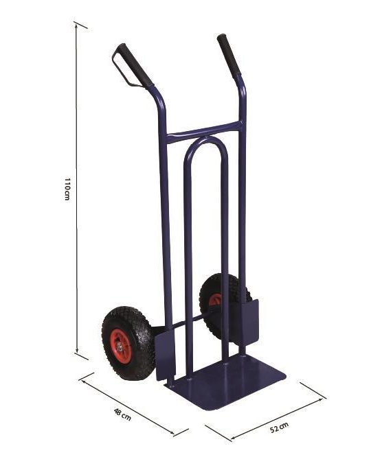 Carretilla de mano industrial diseñada para maximizar la eficiencia en tus labores de reparto y traslado de mercancías. Cuenta con una pala fija y unas ruedas neumáticas de 260 mm de diámetro que garantizan un desplazamiento suave y estable sobre diferentes superficies, mientras que el chasis de acero con tubos de refuerzo en la parte trasera ofrece durabilidad y resistencia. La carretilla se suministra con clips que permiten un montaje rápido y sencillo de las ruedas, lo que facilita su uso inmediato. Ideal para almacenes, centros de distribución y cualquier entorno que requiera un transporte eficiente y confiable de mercancías. Medidas de pala: 30 x 20 cm, Esta carretilla permite transportar cargas con un peso máximo de 250 kg.