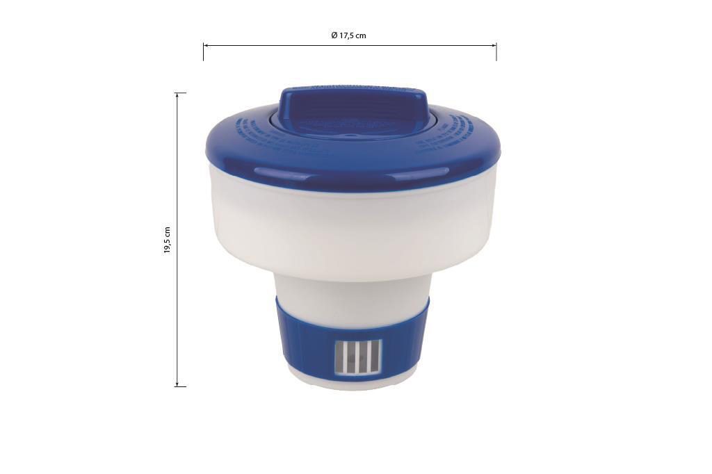 Dosificador de cloro para pastillas de 100 o 200 gramos, diseñado para ofrecer una solución eficiente y duradera. El dosificador está fabricado con polipropileno resistente, garantizando una larga vida útil y durabilidad. Este material es conocido por su resistencia a los productos químicos, asegurando que el dosificador no se degrade con el tiempo. El dosificador es flotante, lo que permite una distribución uniforme del cloro en toda la piscina. Además, cuenta con ventilaciones ajustables que permiten regular la salida del cloro según las necesidades específicas de la piscina. Esto permite mantener el equilibrio perfecto de cloro, asegurando una limpieza eficiente sin desperdiciar productos químicos. Con una capacidad diseñada específicamente para pastillas de cloro de 100 o 200 gramos, este dosificador ofrece una amplia capacidad de almacenamiento, reduciendo la frecuencia de recargas y asegurando una liberación continua y constante de cloro. Equipado con una tapa de seguridad que evita que las pastillas de cloro se derramen, este dosificador garantiza que los productos químicos se mantengan contenidos y seguros. Ideal para cualquier tipo de piscina, ya sea al aire libre o interior, así como para spas y jacuzzis. Utiliza el dosificador para mantener los niveles de cloro en la piscina, asegurando que el agua se mantenga limpia y libre de contaminantes. Al liberar cloro de manera continua, el dosificador ayuda a prevenir el crecimiento de algas y la proliferación de bacterias. Inserta las pastillas de cloro, ajusta las ventilaciones y coloca el dosificador en la piscina. El cloro se distribuirá automáticamente, manteniendo el agua en condiciones óptimas. Al regular la salida del cloro, puedes optimizar el uso de los productos químicos, evitando el desperdicio y asegurando que cada pastilla de cloro dure más tiempo. Mantener los niveles adecuados de cloro es crucial para la salud de los usuarios de la piscina. Las dimensiones de los dosificadores varían según su capacidad. Los dosificadores con pastillas de cloro de 200 g, su medida es de 17,5 cm de diámetro y 19,5 cm de alto.