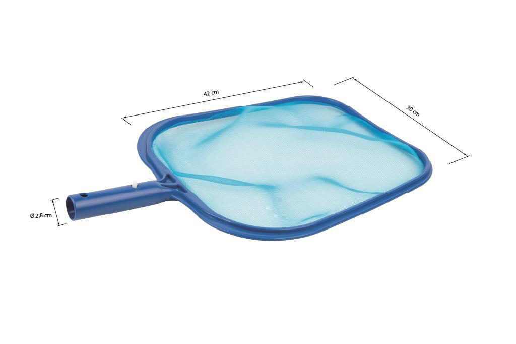 Mantén la piscina libre de hojas, insectos y otros residuos para disfrutar del agua limpia y segura. El recoge hojas de superficie para piscinas está diseñado específicamente para facilitar esta tarea, permitiendo mantener la piscina en óptimas condiciones con el mínimo esfuerzo. Fabricado en polietileno duradero, este recoge hojas garantiza una larga vida útil. El material resistente asegura que la malla no se rompa ni se desgaste fácilmente, incluso con el uso frecuente. Con medidas de 42 x 30 cm, el recoge hojas ofrece una amplia superficie de captura, permitiendo recoger grandes cantidades de residuos en una sola pasada. Su diseño ergonómico facilita el manejo y reduce la fatiga durante el uso. La malla fina y resistente está diseñada para atrapar incluso los residuos más pequeños, asegurando que ningún fragmento de suciedad quede en la superficie del agua. Esto no solo mejora la apariencia de la piscina, sino que también contribuye a mantener el agua más higiénica. Equipado con un conector de Ø 2,8 cm, el recoge hojas se acopla fácilmente a cualquier pértiga o mango especial, proporcionando una conexión segura y estable mediante el sistema rápido de clip. Esta funcionalidad permite alcanzar los rincones más alejados de la piscina sin esfuerzo. Adecuado para cualquier tipo de piscina, ya sea en exteriores o interiores, este recoge hojas es una herramienta versátil que se adapta a diversas necesidades de limpieza. Es ideal para piscinas de todos los tamaños, spas y jacuzzis. Usos del Producto: Utilizar el recoge hojas diariamente para mantener la superficie de la piscina libre de hojas, insectos y otros residuos. Esto ayuda a prevenir la acumulación de suciedad en el sistema de filtración, mejorando su rendimiento y prolongando su vida útil. Así se asegura que el agua esté siempre limpia y lista, proporcionando un ambiente seguro y agradable.