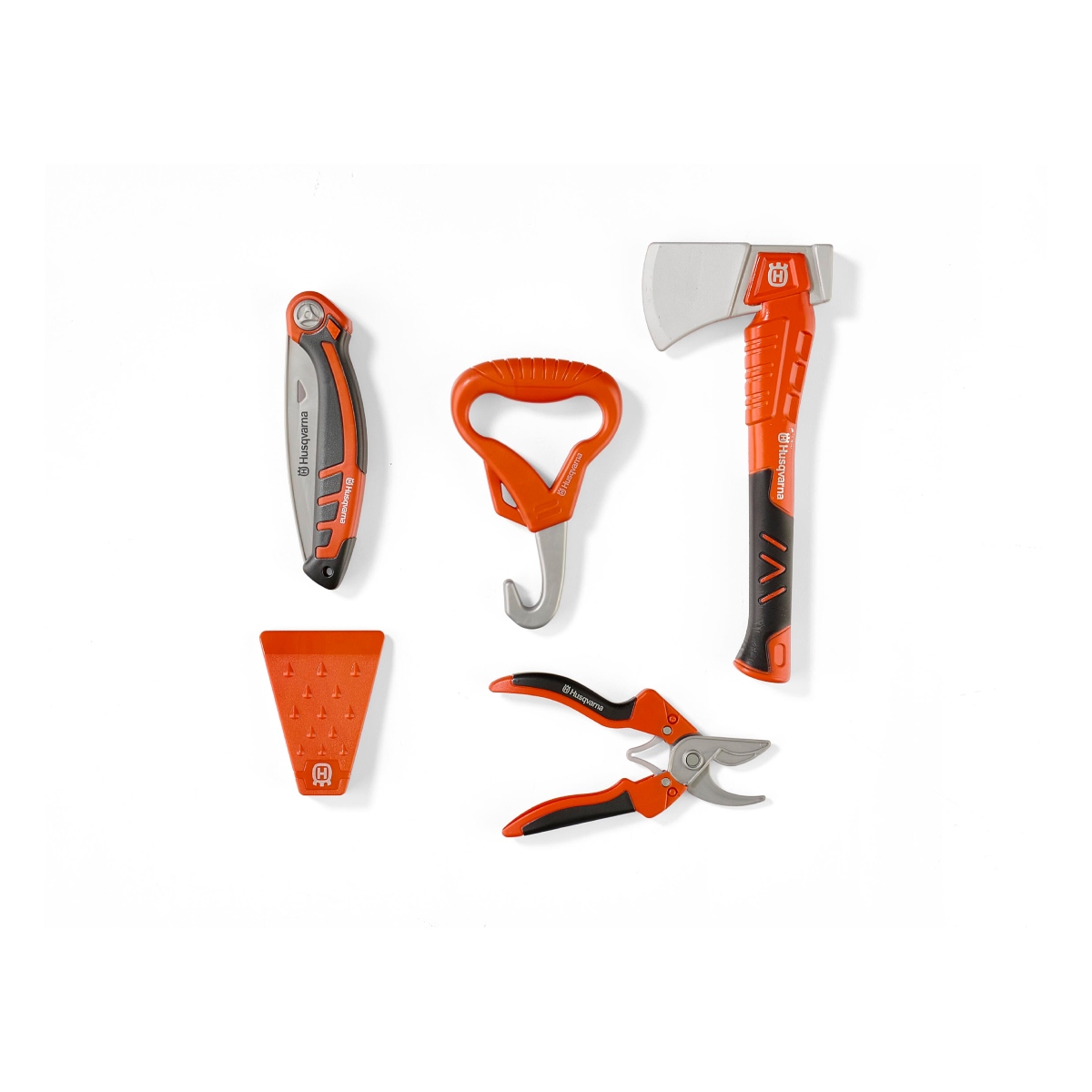 Cinturón de herramientas Husqvarna, el juguete perfecto para los más pequeños de la casa. Este producto está especialmente pensado para que simulen ser jardineros profesionales o leñadores. Incluye un hacha, un alicates, una navaja, un gancho y una cuña, todos ellos fabricados en plástico. *Este juguete no corta.