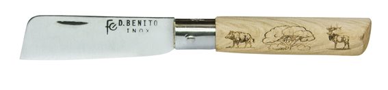 Navaja Taponera Javalí- Venado de acero inoxidable con grabado en la madero de encina