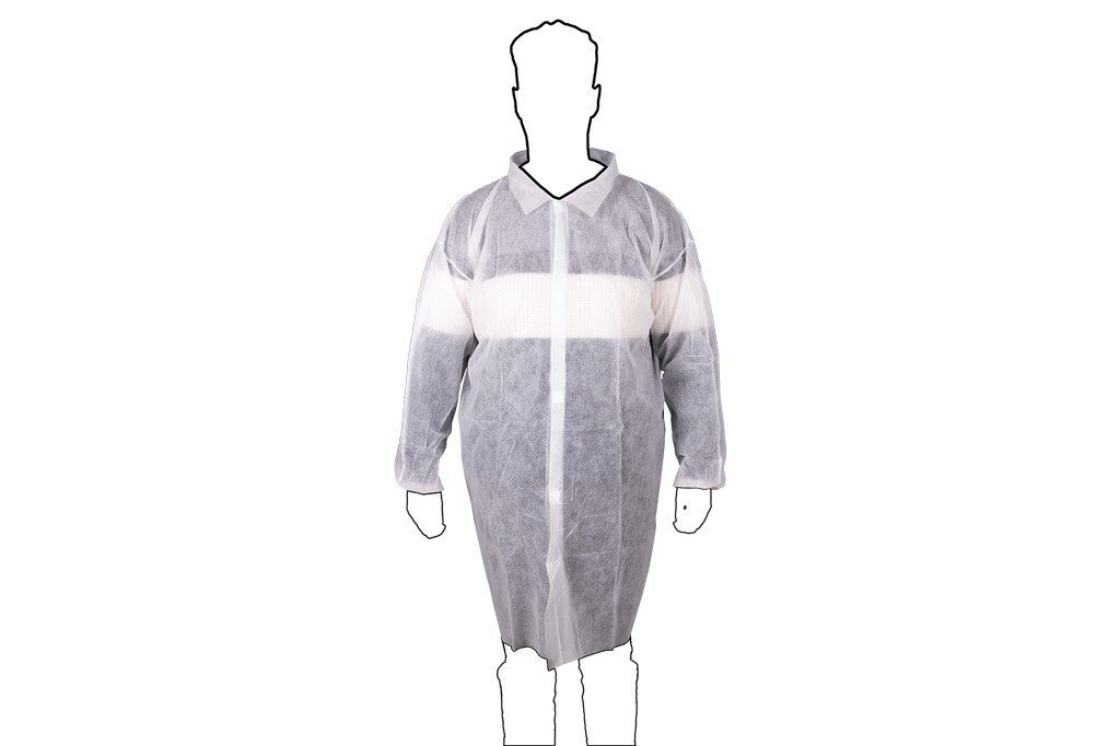 Bata blanca desechable perfecta para proteger tu ropa de manchas y salpicaduras. Fabricada en tejido TNT de polipropileno, esta bata está diseñada para ofrecer comodidad y protección. Cuenta con un cierre frontal de velcro y puños elásticos para garantizar un ajuste seguro y una protección completa para los brazos. Con un gramaje de 30 g/m2, esta bata es ligera y transpirable, ideal para tareas de limpieza, laboratorios, industria alimentaria, sanidad o cualquier trabajo que requiera mantener tanto al usuario como a la ropa protegidos. Su talla única se adapta a diferentes usuarios sin restringir los movimientos. La bata desechable se presenta en envase unitario.